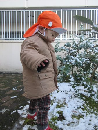 雪の冷たさにビックリする子もいれば、手で豪快に触る子もいました!