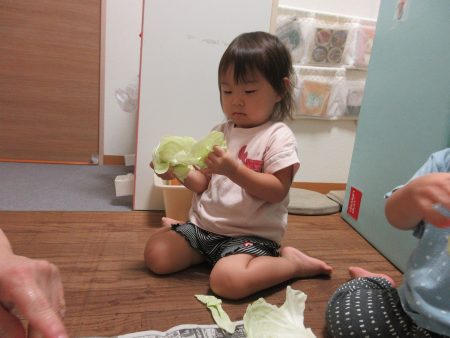 焼きそばに入るキャベツは子どもたちがちぎってくれましたよ!