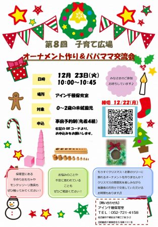 クリスマスのオーナメント作りと前回好評だったパパママ交流会を行う予定です!!☺