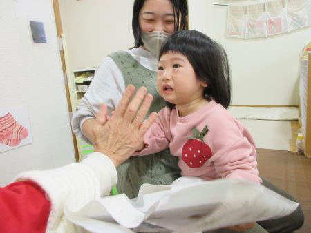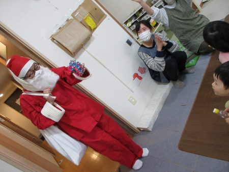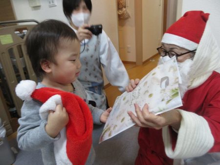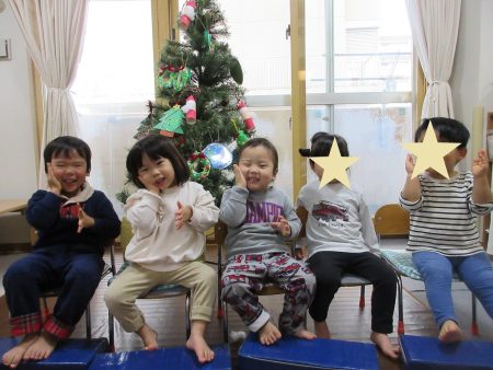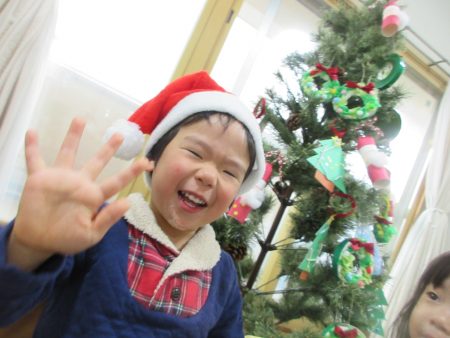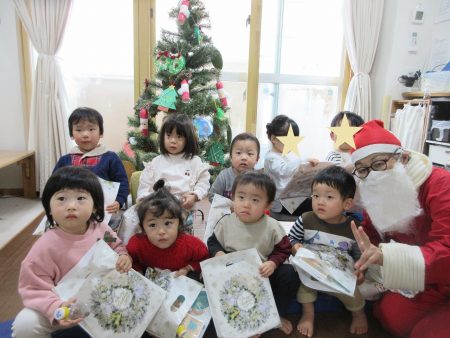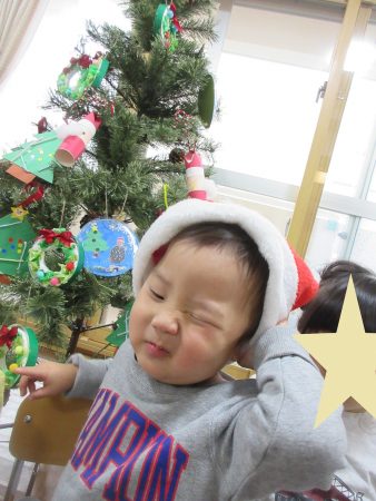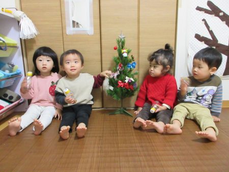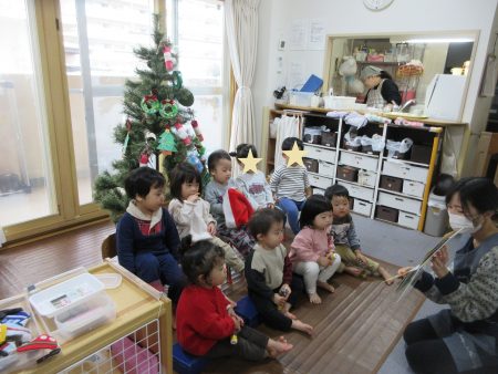 今日はクリスマス!ということで、保育室でもクリスマス会を行いました。