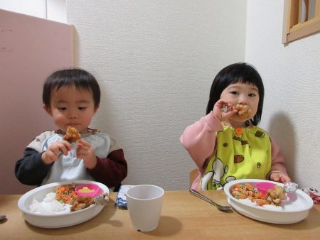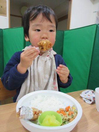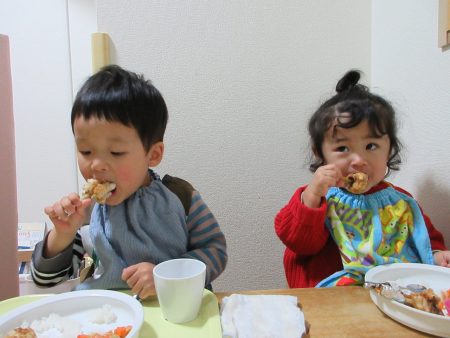 美味しそうにチキンやケーキにかぶりつく子どもたち!