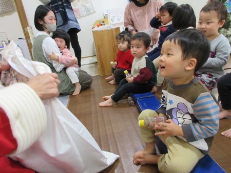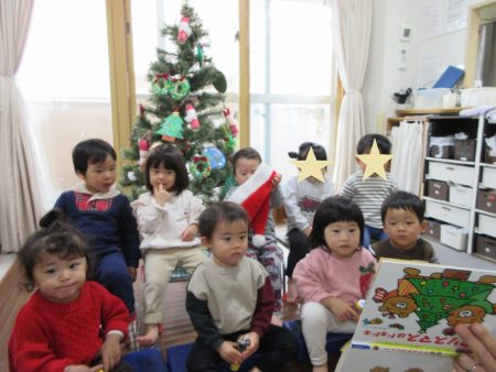 うさぎ組(1歳児クラス)、きりん組(1・2歳児クラス)みんなで集まってクリスマス会がスタート!