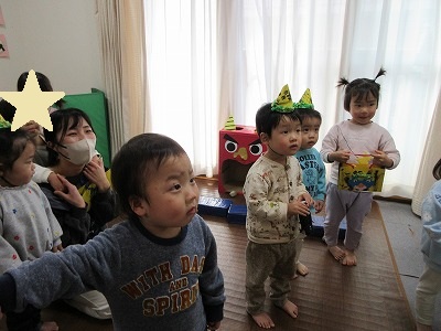 今日は節分👹 保育室でも子どもたちと豆まきを行いました。