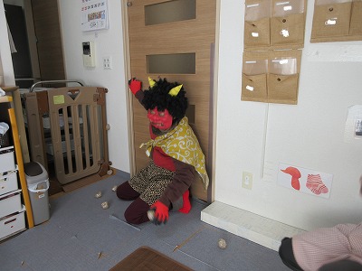 今日は節分👹 保育室でも子どもたちと豆まきを行いました。