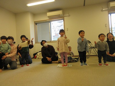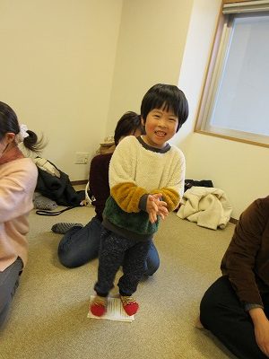 保育士とのじゃんけんを楽しんだり、小さくなった新聞紙の上で色んなポーズをしながらバランスを取ったり…