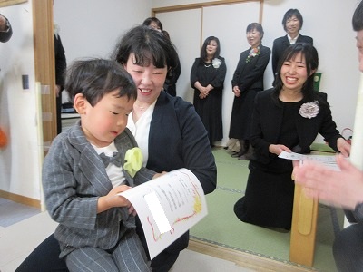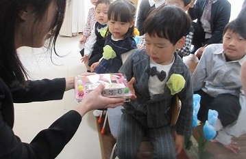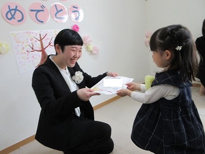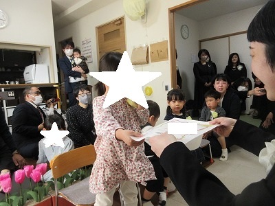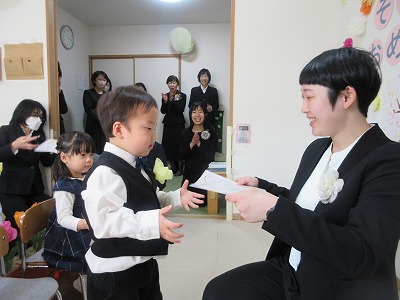卒園証書授与では、一人ずつ保育士から卒園証書を受け取ることができましたよ。