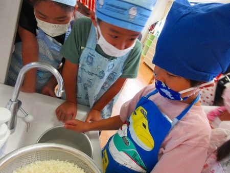 お家でもお手伝いしている子もおり、「まかせて」と意気込んだりやや慣れた手つきで研ぐ姿も見られたりと、頼もしさも感じられます。