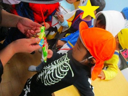 お菓子を貰うことが出来ました!大喜びの子どもたちでした♪