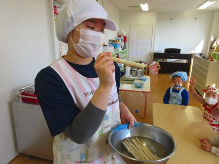 「!!!、おいし!!!!」「かんげきだ~」と、子どもたちも仕上がりに大満足の様子で喜んで食べていました。今回のクッキングも「だいせいこう!!!」でした♡