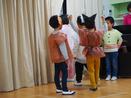 さて12月11日、今日は待ちに待ったおたのしみ会。子どもたちはクラスの仲間たちと楽しみながら劇あそびや合奏の活動に取り組んできて、お家の方に見て頂くのも楽しみにしていました。