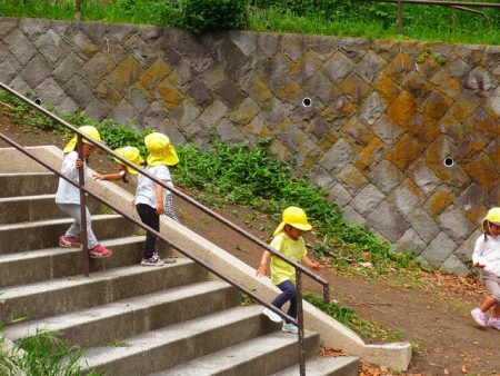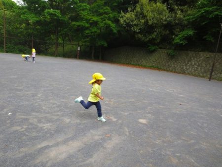 元気いっぱいの子どもたち、坂道を走って登ります。