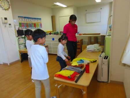 おたのしみ会終了後、自分たちの手作り衣装を保護者の方に見せる時間を設けました。