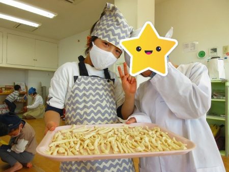 太いものもご愛嬌。みんなで作ったうどんに大満足の子どもたちでした。
