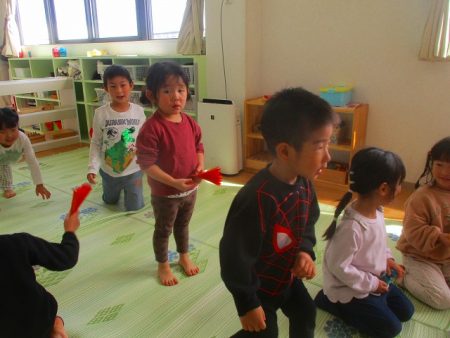 わかば組の子どもたちは、♪たのしいひなまつり を3番まで歌いました。