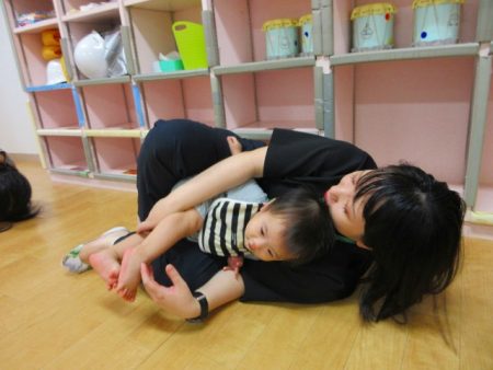 続いて、みんなで普段園で行なっているわらべうたを一緒に楽しみました!