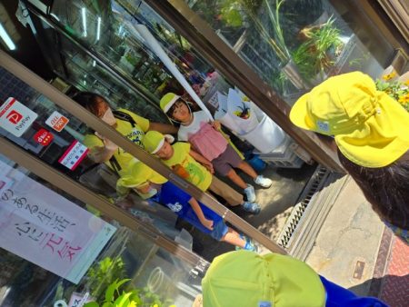 廊下に掲示された、お月見に関するポスターを読んで、お月見の由来などを知ったたいよう組の子どもたちは必要なものを話しあって買い物に行ってくれました。