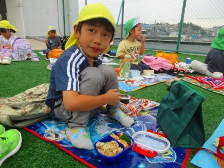 雨も止んでみんなでシートを広げてお弁当タイム♡