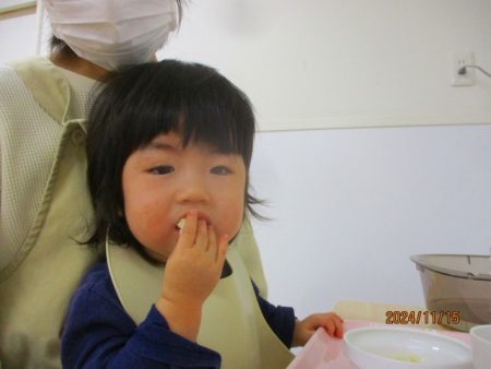 午後のおたのしみおやつは、年長さんたち考案の 柿クッキー!