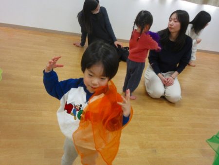 お友だちにオーガンジーを被せてあげる姿もありましたよ。