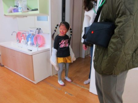 普段とは違う雰囲気の中、緊張した面持ちで登園してくる子どもたちでしたが、クラスの友だちが揃うにつれて少しずつ表情も柔らかく笑顔が見られるようになっていきました。