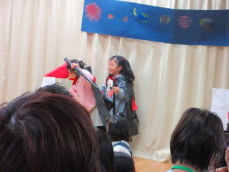 緊張しながらも自分たちで作った劇を楽しんでいた子どもたち。
