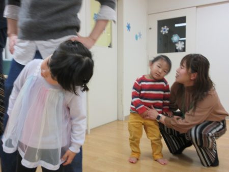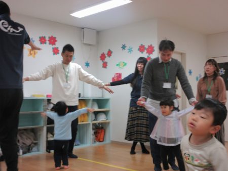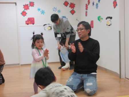 ♪かえりましょ の部分がむずかしいポイントですが、お家の方と息を合わせて何度かやっていくと成功していましたよ。