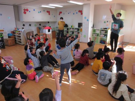 保育士が出すいくつかのヒントをもとに答えを考えるゲームで、