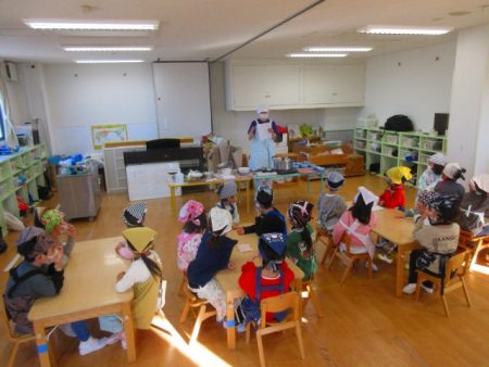 そして給食の時間。さくら・たいよう組が作ったおせち料理を、わかば組も一緒に、いざ喫食!