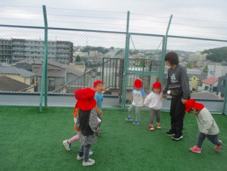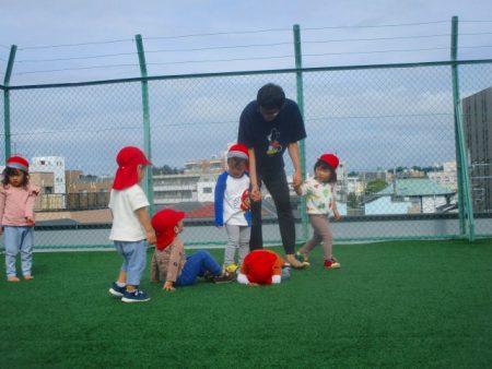 屋外で遊ぶときには、むっくりくまさんが大ブームでした。