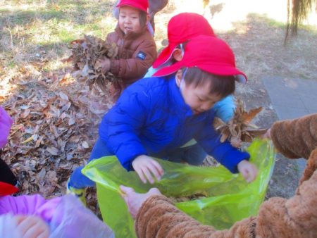 落ち葉や松ぼっくりなどの自然物も大好きなみんなです。