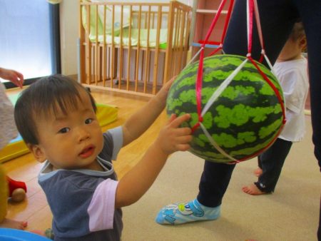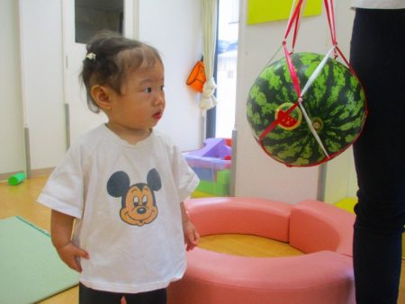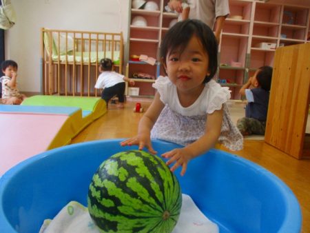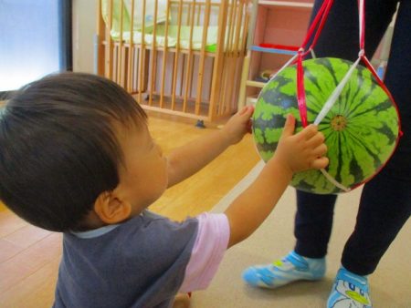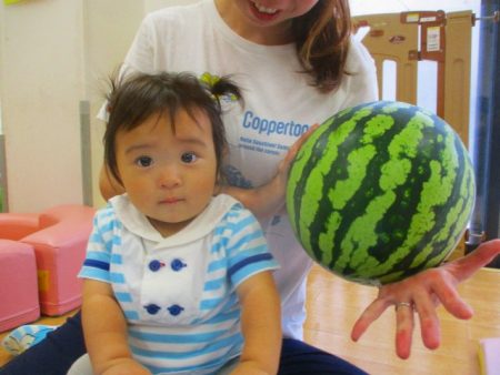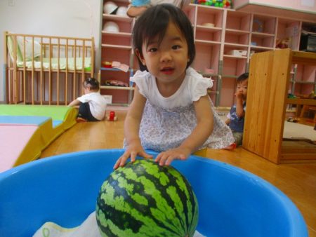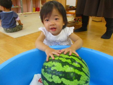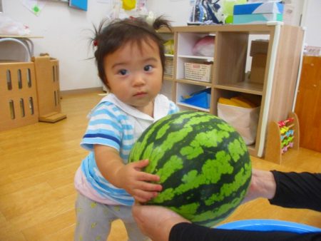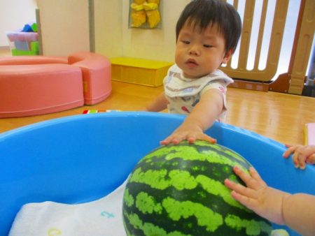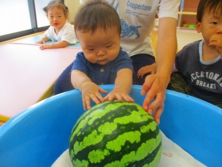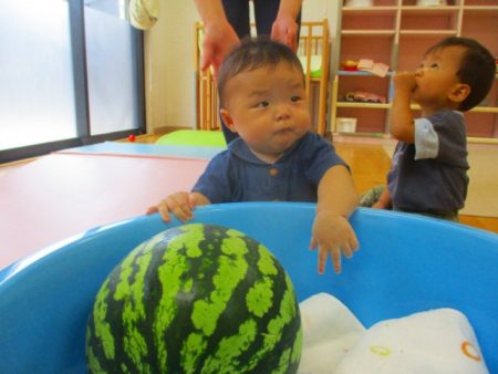 スイカって大きいね~♪【0歳児さくらんぼ組】アイン弘明寺保育園