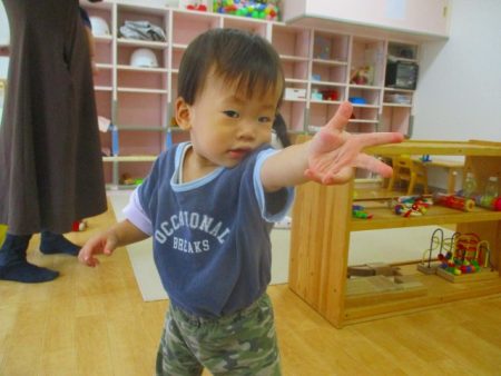 保育士と一緒に触ったり、見たりしていると少~しずつ慣れていき、指先を使いツンツンしてみたり、手のひらでトントンと叩いてみたり…