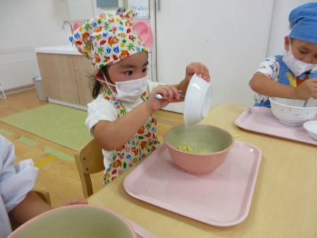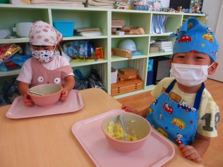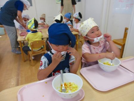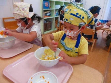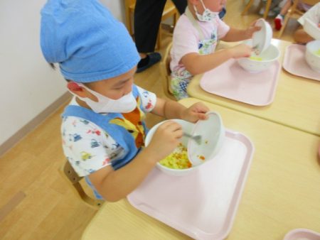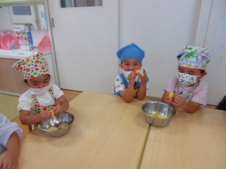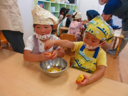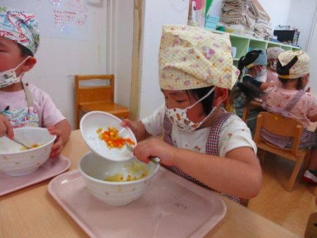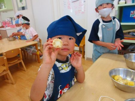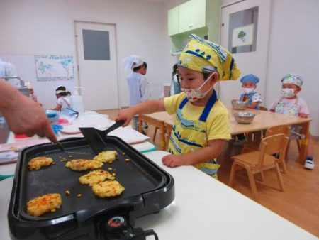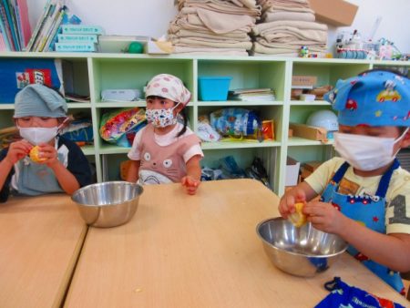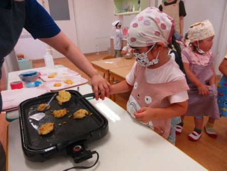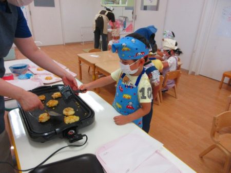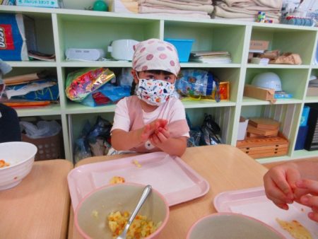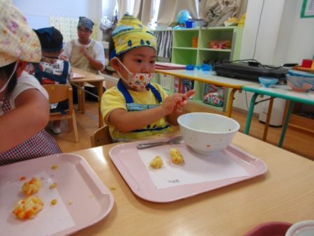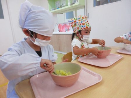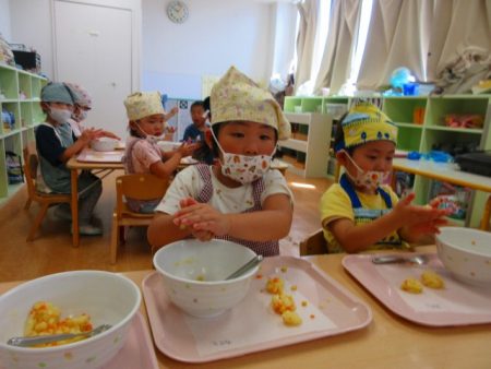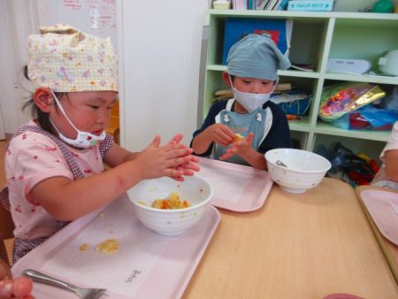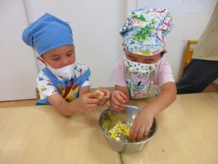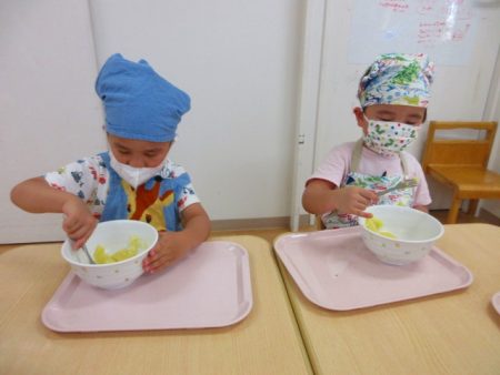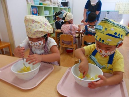 つぶして、まぜて、やいたら出来上がり!【3歳児 わかば組】アイン弘明寺保育園