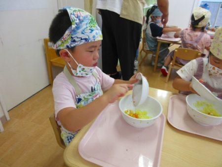 自分たちの作ったものを自慢したり、お手伝いをしたものを食べてもらって喜んだりと子どもたちからたくさんの笑顔が見られました!