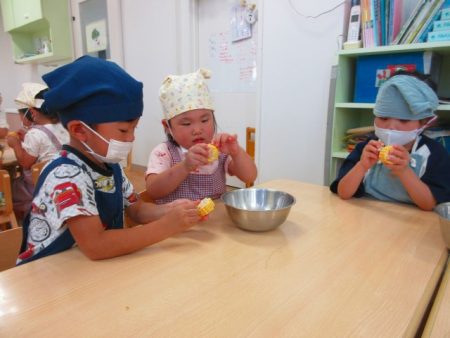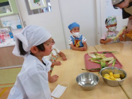 匂いを嗅いだり、トウモロコシの実を取ってみたりとたくさん触れた子どもたち。