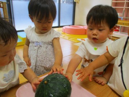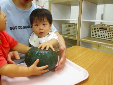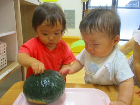 野菜にふれてみたよ♪【0歳児さくらんぼ組】アイン弘明寺保育園