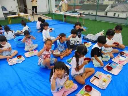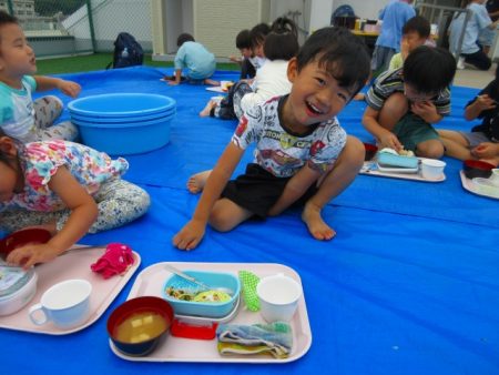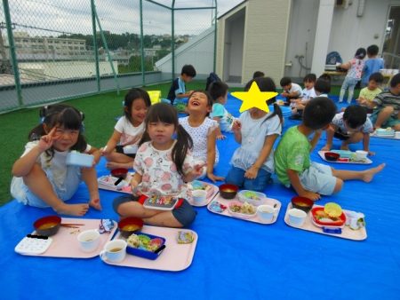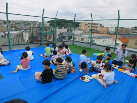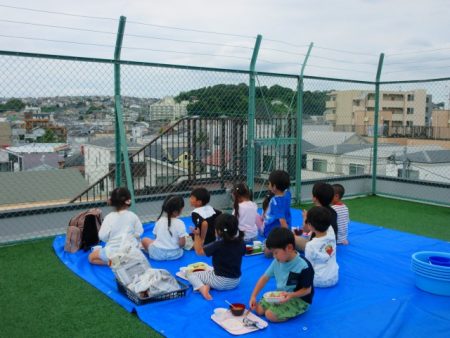 屋上でピクニックだイェーイ! 【幼児クラス】アイン弘明寺保育園