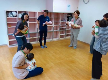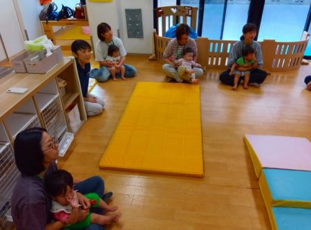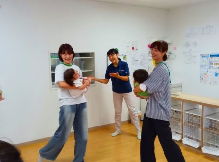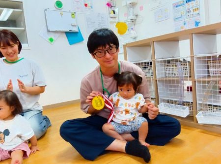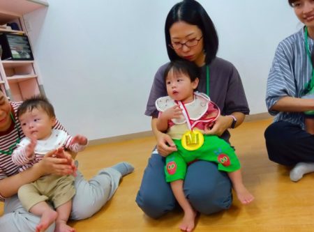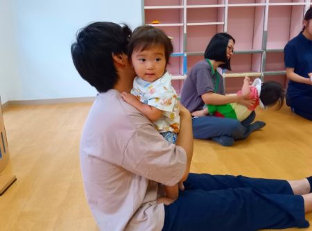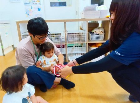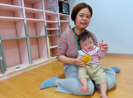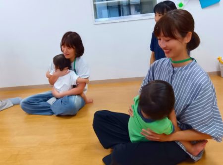 たくさん体を動かした後は普段から行っているわらべうたを保護者の方と楽しみました!