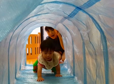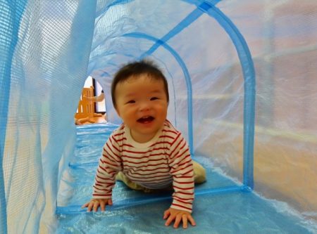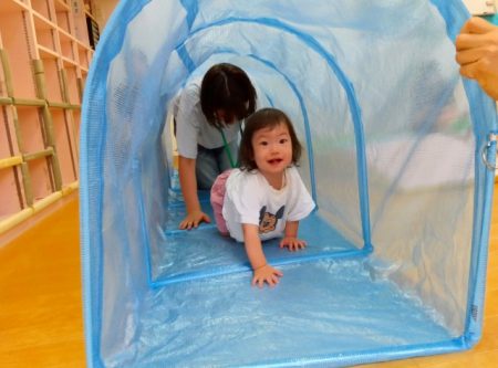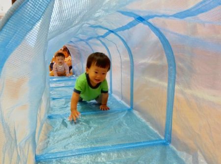 トンネルの外側から顔をくっつけて中にいる友だちを見て楽しむ姿も…( *´艸`)