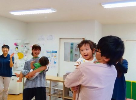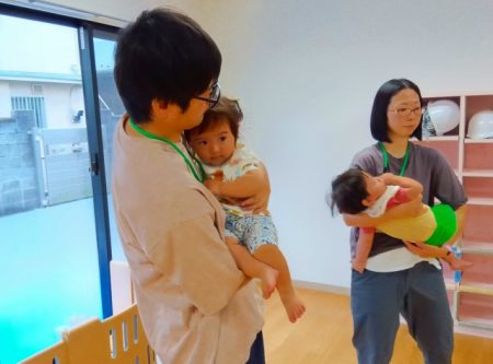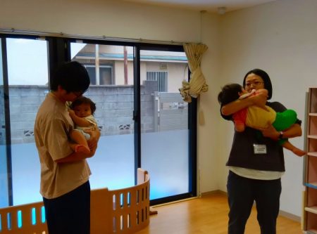 普段と違う保育室に戸惑い、保護者の方のそばからなかなか動けなかった子どもたちも