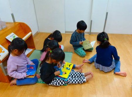 1人ずつ入るので、待っている間は絵本を読んだり、保育士と触れ合ったりして順番を待ちます。