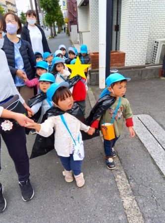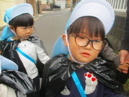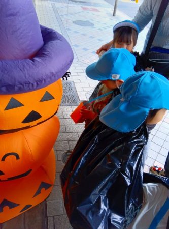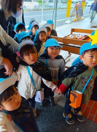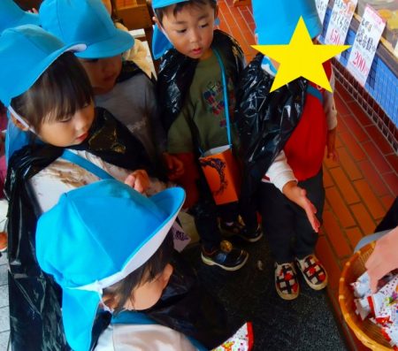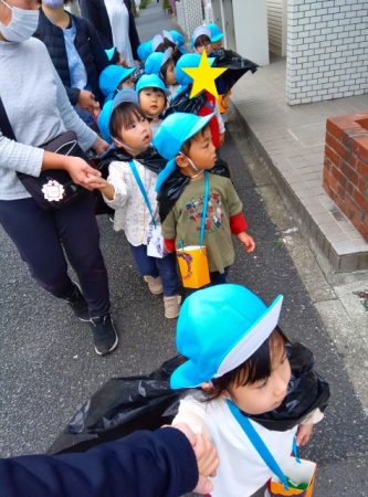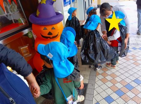 みんなで仮装をして保育園の近くをお散歩して近隣のお店に行きます♪