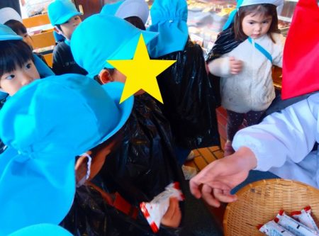 順番にお菓子を貰って嬉しそうな子どもたちでした!
