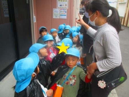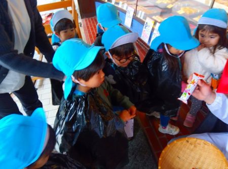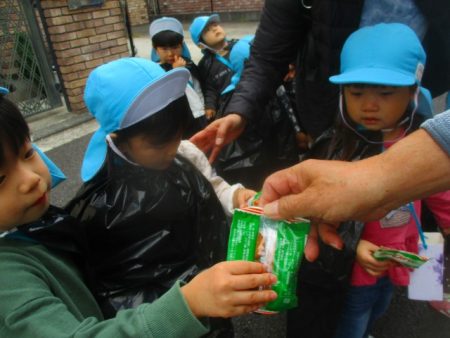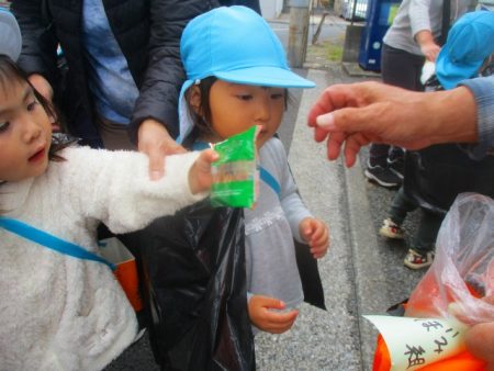 貰ったお菓子はお菓子入れに入れて保育園に戻ります。