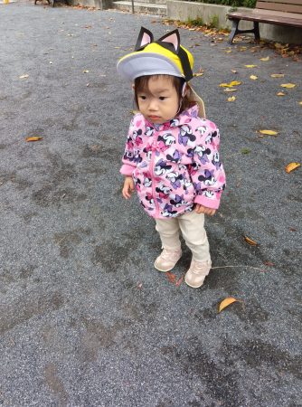 絵本を楽しんだ後は、猫耳を付けてお散歩に行き、