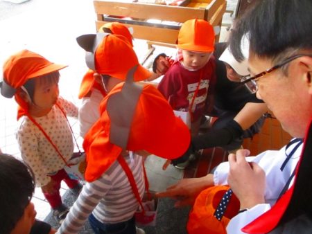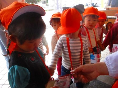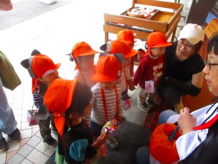 もらったおかしは、大切にポシェットに入れて持ち帰りました◎ お家の方と一緒に食べてね♪