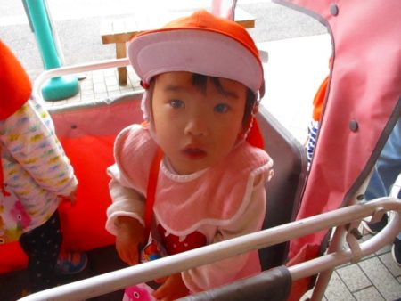 えっ、おかし、もらっていいの?と少し不思議そうにしつつも、自分のてづくりおばけポシェットを指差したり、手を差し出したりして、しっかりと ”ちょうだい” のアピールをしていました(笑)