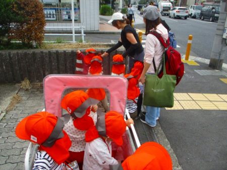 途中、近所の和菓子屋さん”盛光堂”さんへ立ち寄ると、店内の装飾にまたカボチャやおばけを見つけて、子どもたちも楽しそうに見上げたり指差したりしていました。