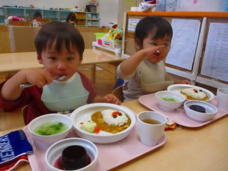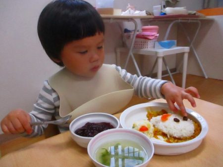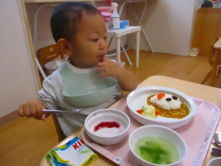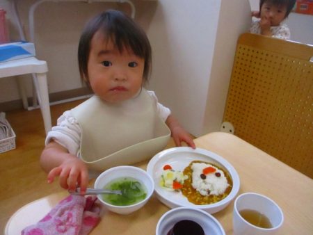 この日は給食もハロウィンスペシャル!おばけちゃんカレ―、「かわいいねー」と大喜びの子どもたち。もったいなくてなかなか顔を食べられない…という子もいました。