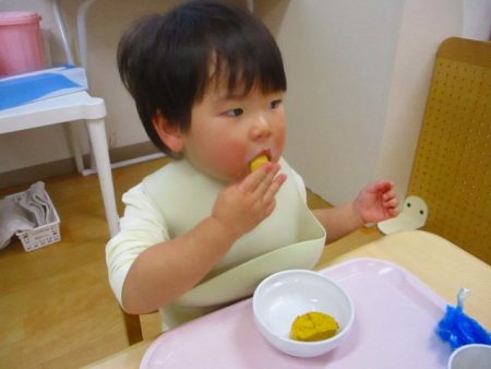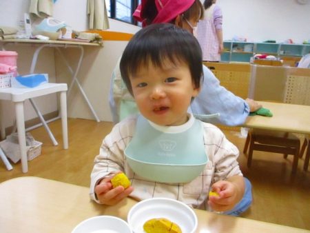 絵本や園内でもよく見かけたカボチャとおんなじ形のパンに、子どもたちも「かぼちゃだ!」と喜んで食べていましたよ♪